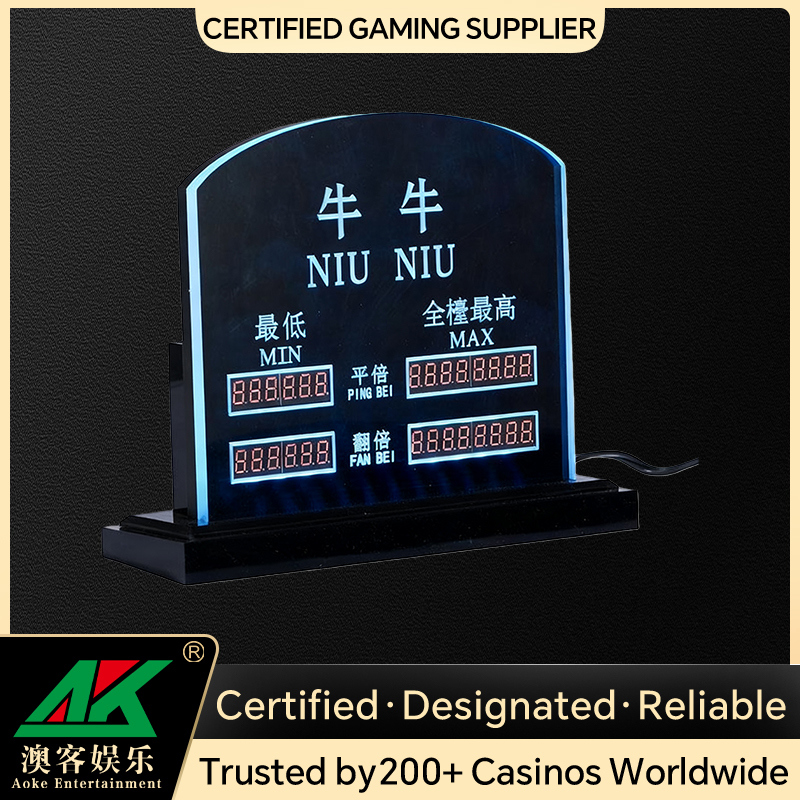 মাল্টি-কালার এলইডি লাইট দিয়ে সজ্জিত, কার্ডটি সক্রিয় বাজি সীমা নির্দেশ করতে ফ্ল্যাশ করে। সমৃদ্ধ রঙের প্যালেট উচ্চ দৃশ্যমানতা নিশ্চিত করে এবং টেবিলের নান্দনিকতা বাড়ায়, যা ডিলার এবং খেলোয়াড়দের জন্য সীমা ট্র্যাক করা সহজ করে তোলে।