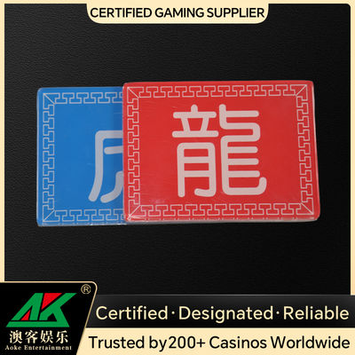 पैरामीटर विवरण सामग्री ऑप्टिकल-ग्रेड एक्रिलिक, खरोंच-प्रूफ और वाटरप्रूफ आकार मानक 90 × 45 × 3 मिमी (कस्टम उपलब्ध) वज़न प्रति कार्ड 12–15g रंग लाल / नीला / कस्टम दोहरे टोन उपयोग बैकारेट, ड्रैगन टाइगर, पोकर रूम, कैसीनो इवेंट अनुकूलन लोगो, टेक्स्ट, रंग, आकार, RFID फ़ंक्शन अनुपालन ISO 9001 / CE प्रमाणित ![]()