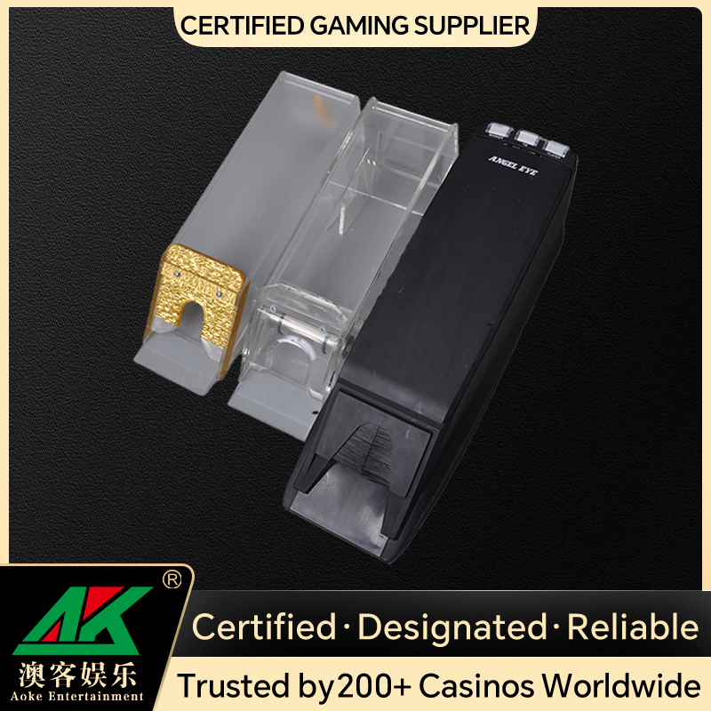 Tingkatkan operasi kasino Anda dengan AOKE Professional Clear Acrylic Dealer Shoe, dibuat untuk Baccarat, Blackjack, dan permainan meja bervolume tinggi lainnya. Dibuat dari akrilik bening kristal premium dan dirancang untuk menampung hingga 8 dek, sepatu dealer ini menggabungkan penanganan kartu yang mulus, daya tahan superior, dan transparansi penuh untuk memperkuat integritas permainan dan kepercayaan pemain. Basisnya yang ramping dengan hasil akhir matte mengurangi silau, sementara desain ergonomis memastikan keamanan dan kenyamanan bagi dealer selama sesi yang berkepanjangan. Ideal untuk kasino, turnamen poker, dan distribusi grosir.