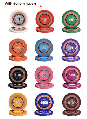 Le fiches da poker in ceramica Constellation da 10g sono progettate per casinò professionali, organizzatori di tornei e club di gioco che richiedono fiches da poker di alta qualità e personalizzabili. Ogni fiche ha un diametro di 39 mm, uno spessore di 3 mm e pesa 10 g per una manipolazione, un'impilatura e una mescolatura coerenti. Con 12 colori vivaci e 13 tagli (1-10000), queste fiches sono adatte per sale da poker ad alto volume e tornei in stile EPT. Le fiches vuote possono essere personalizzate con metodi di sublimazione o stampa per loghi, branding di eventi o design specifici del casinò.