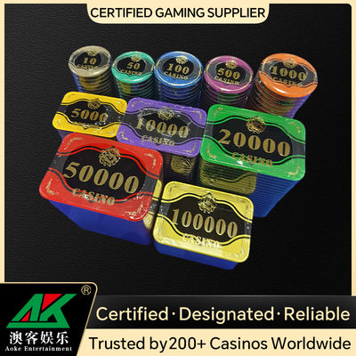 جعبه تراشه خود را با برجستهکاری لوگو، رنگهای سفارشی، اندازههای محفظه قابل تنظیم یا تراشههای مجهز به RFID شخصیسازی کنید تا با برندسازی کازینو یا الزامات مسابقات شما همسو شود.