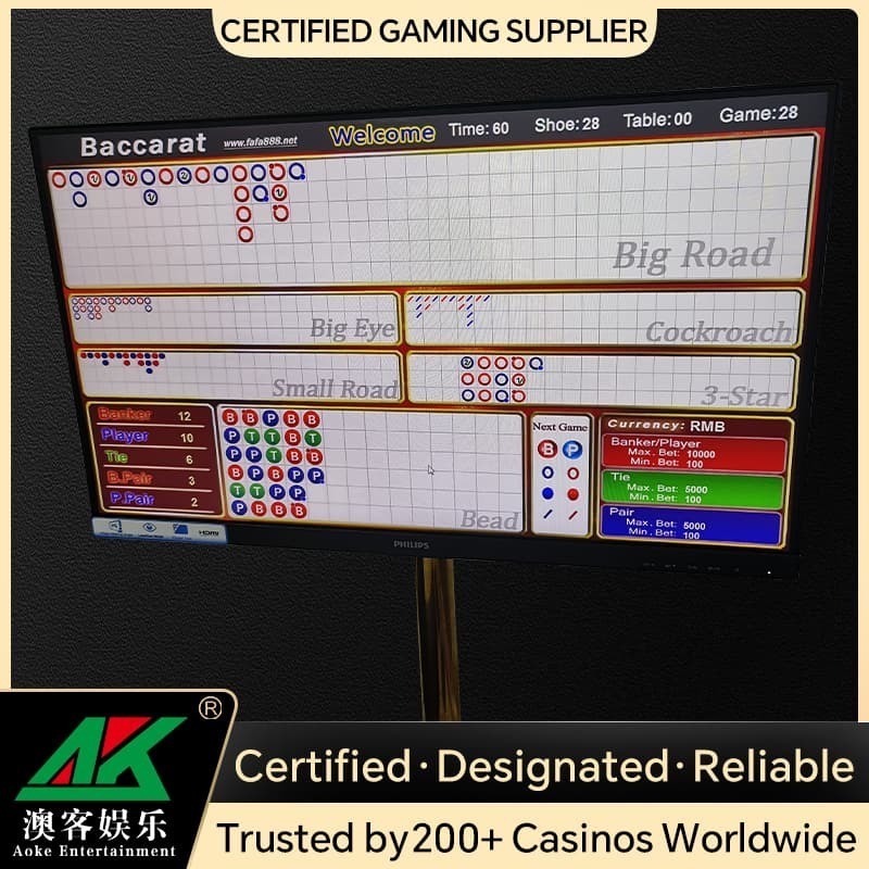 Sistema de Placares Eletrônicos AOKE Baccarat com Interface Personalizável para Cassinos Profissionais
