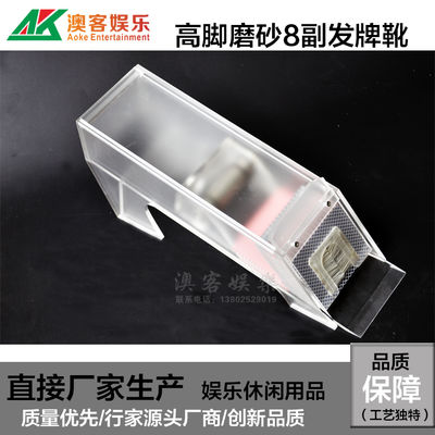 Experience next-level precision and sophistication at the gaming table with the AOKE Elevated Frosted Acrylic Dealer Shoe — a masterpiece designed for elite Baccarat, Poker, and Blackjack operations. Combining engineering precision with elegant aesthetics, this model features a reinforced weighted steel roller system and an ergonomic raised base that enhances both efficiency and comfort. Designed to hold up to eight decks, it offers unmatched reliability and refined control, making it the preferred choice for luxury casinos and professional tournament setups worldwide.