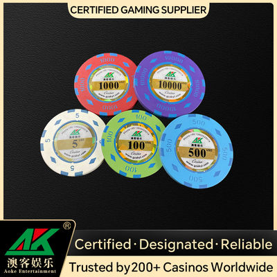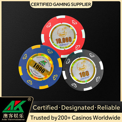 | Size | Customizable, standard 39–43mm diameter, 10–15g per chip |
