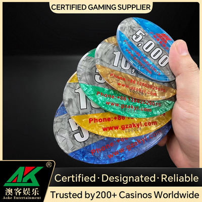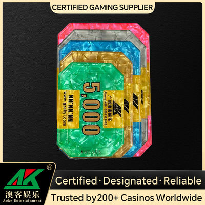 Made from reinforced acrylic, these chips resist scratches, fading, and water exposure. Tested for over 500 intensive uses, they maintain their visual appeal and tactile feel, ideal for high-traffic casino environments.