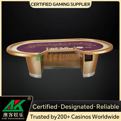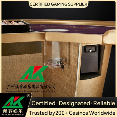 Experience professional-grade casino gaming with our 9-player poker table, designed for baccarat, poker, and other table games requiring durability, precision, and style. Constructed with high-fiber fireproof boards and premium velvet felt, the surface is water- and dust-resistant, maintaining flawless performance through intensive, long-term use. Ideal for large casino halls, high-stakes tournaments, and bulk orders by gaming distributors. Fully customizable in felt color, edge trim, frame finish, and branding logos.