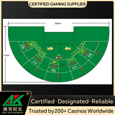 Enhance your casino gaming environment with the Super Niu Niu 5 Doors Poker Game Portable Entertainment Layout, a premium table mat designed for professional use. Crafted with eco-friendly flannel, it delivers a soft, smooth touch while maintaining superior durability. Perfect for professional tournaments, casino floors, and wholesale distributors, this table mat combines functionality with elegant design for a flawless gaming experience.