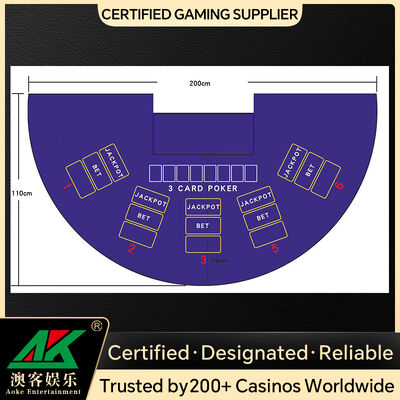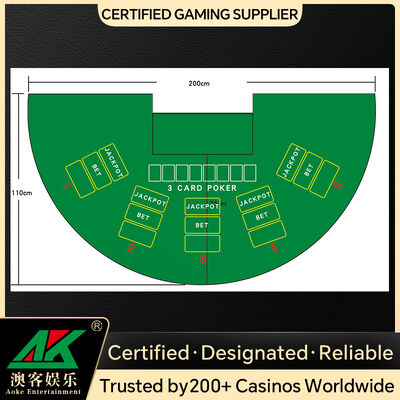 This Casino Table Mat is engineered specifically for Three Card Poker and Five Card Poker layouts, providing a clear, standardized playing surface for casinos, poker clubs, and tournament organizers. By integrating precise card zones and betting areas into a durable felt table layout, it helps operators deliver consistent gameplay while improving table efficiency and visual professionalism.