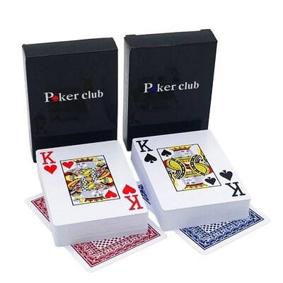 These 6.3*8.8 cm plastic playing cards are designed for Texas Hold’em poker and other casino games. Made from 180g 100% plastic, the cards are highly durable, resistant to bending and moisture, and maintain smooth shuffling and dealing in high-volume poker rooms, gaming clubs, tournaments, or home events. The red and blue color options make it easy for casinos and distributors to manage multiple decks in large-scale setups.