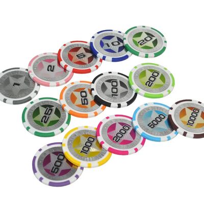 Upon receipt, inspect all chips, accessories, and the aluminum storage box for quantity and quality verification. Allocate chips to tables according to your tournament or cash game structure. For optimal organization, store chips in trays or boxes when not in use. Standardize denomination mapping across tables for large-scale deployment to minimize dealer errors. Clean chips with a soft cloth only; avoid abrasive cleaners that may damage the surface.