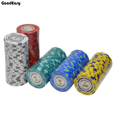 The 40mm Monte Carlo style clay poker chips are engineered for structured casino environments where both visual clarity and chip traceability are required. Manufactured with a clay composite body and internal metal insert, these casino poker chips provide a consistent 14g weight and reliable handling performance for dealers and operators.
